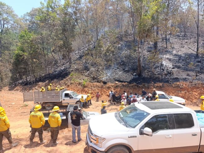 OAXACA DE JUÁREZ, Oaxaca.- La Comisión Estatal Forestal (Coesfo) mediante las brigadas Santa María Zacatepec y Tlaxiaco, atiende el reporte de incendio forestal en el Cerro El Águila, perteneciente al municipio de Putla Villa de Guerrero en la Sierra Sur.
