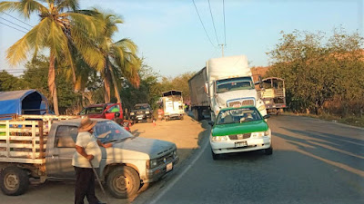 Con el apoyo de unidades de motor, el grupo de manifestantes, provenientes de la comunidad de El Naranjo, interrumpen la circulación vehicular en ambos carriles de la vía de comunicación terrestre que comunica hacia el Puerto de Acapulco y hacia la región de la Mixteca Alta.