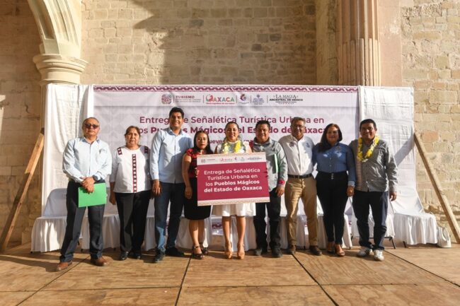 OAXACA, Oaxaca.- La Secretaría de Turismo del Estado (Sectur Oaxaca) realizó la entrega simbólica de más de 100 piezas de señalética turística urbana a los Pueblos Mágicos de: Mazunte, Huautla de Jiménez, San Pedro y San Pablo Teposcolula y Capulálpam de Méndez.