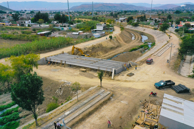Durante la visita a la obra, la presidenta de la Comisión Permanente de Vigilancia de la Deuda Pública del Estado, diputada Griselda Sosa Vásquez; en representación del Diputado Ericel Gómez Nucamendí, Luis Santiago; y la presidenta municipal de Santa Cruz Amilpas, Natividad Matías Morales, verificaron el avance del 80% en la construcción del puente, así como los trabajos adicionales consistentes en recubrimiento de taludes y limpieza del Río Salado a fin de beneficiar a alrededor de 15 mil habitantes.